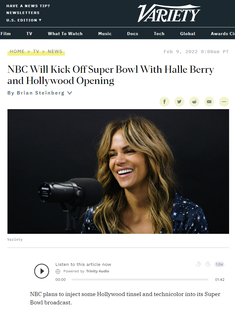 The vignette offers a tribute to football and movies, and showcases many top movies involving the sport. In addition to Berry, the feature includes appearances by Kevin Hart and Carrie Underwood, along with football stars like Marcus Allen, James Harrison, Ronnie Lott, Peyton Manning, Joe Namath and Mike Singletary. The opening was directed by Tripp Dixon, and produced by Fred Gaudelli, Aaron Cohen and Charlie Vanacore.